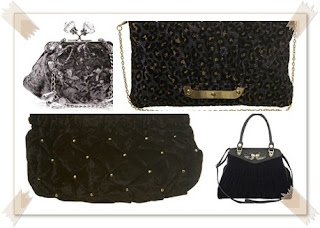 (clockwise) Topshop faux fur bolero by Rare £35; Bank Iska one button faux fur jacket £39.99; River Island red snake effect peep toe heel boots £34.99; New Look fold down lace boot £29.99; Bank Yumi small faux fur bag £14.99; Yumi large faux fur bag £49.99